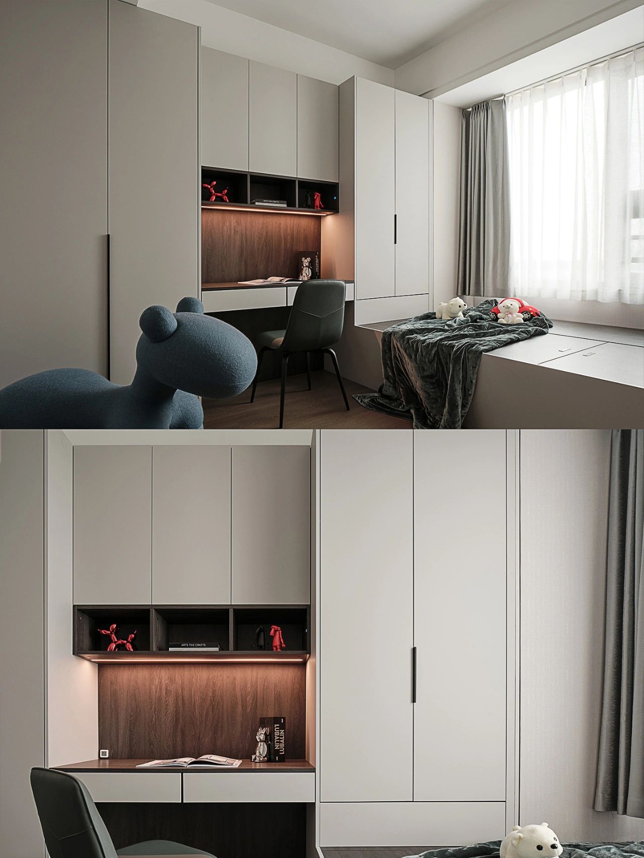 輕奢風全屋定制,高級灰衣柜書桌