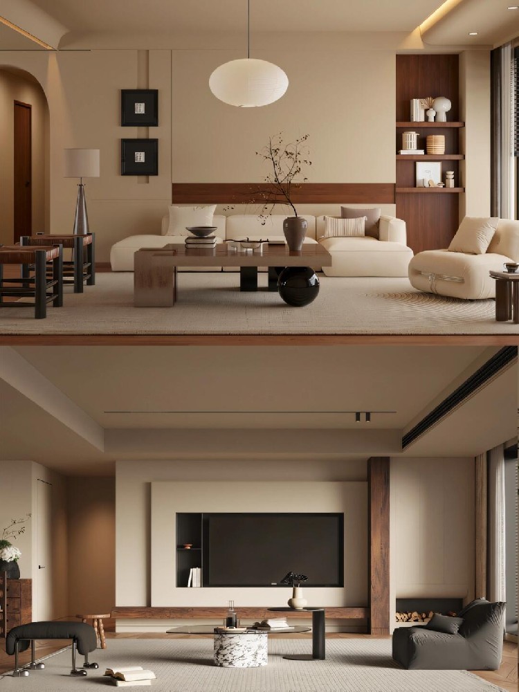 胡桃木飾面延展于空間