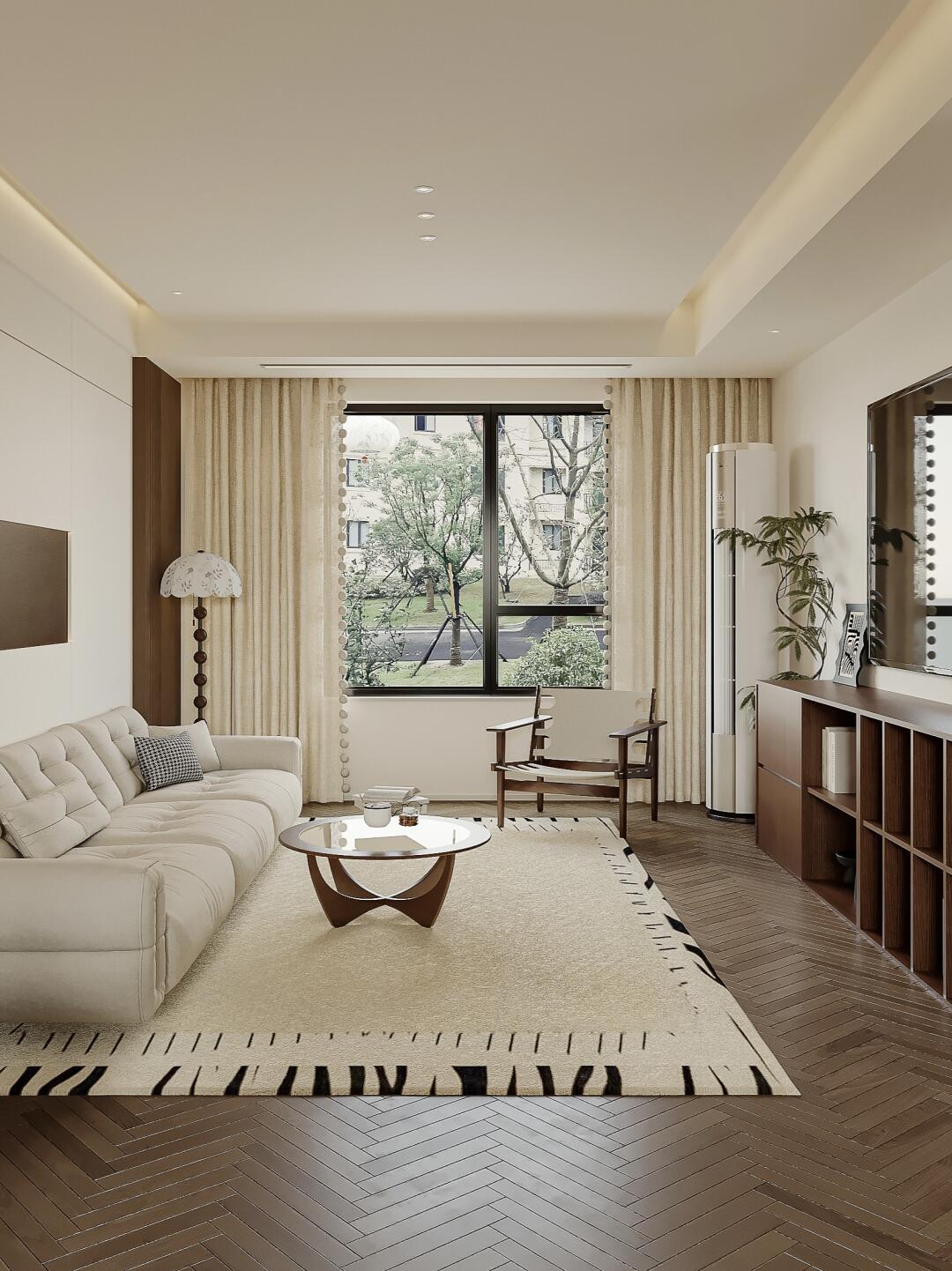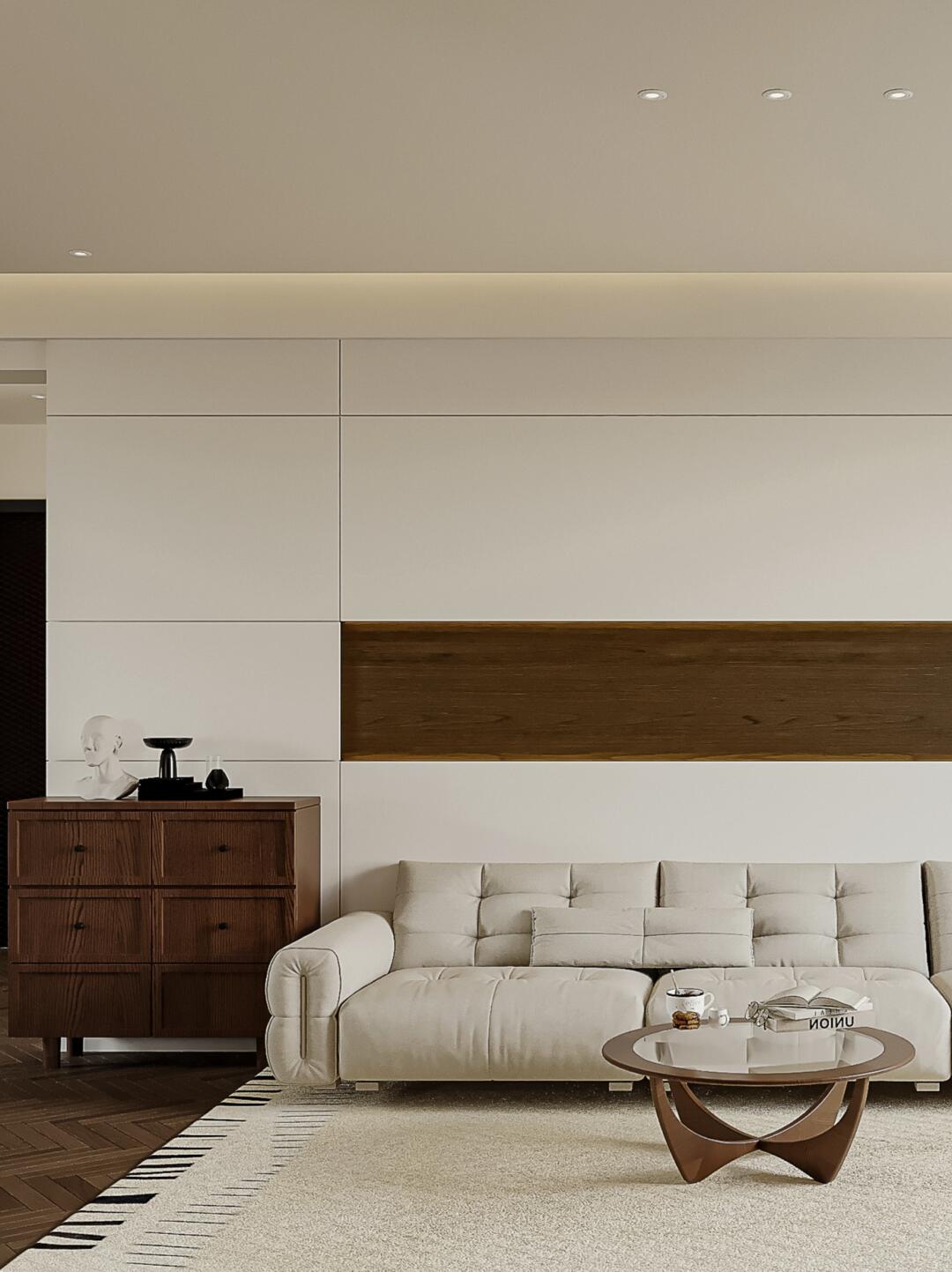 留白的沙發背景墻+木飾裝飾面,豐富視覺效果,使整個空間更加溫潤靜謐。