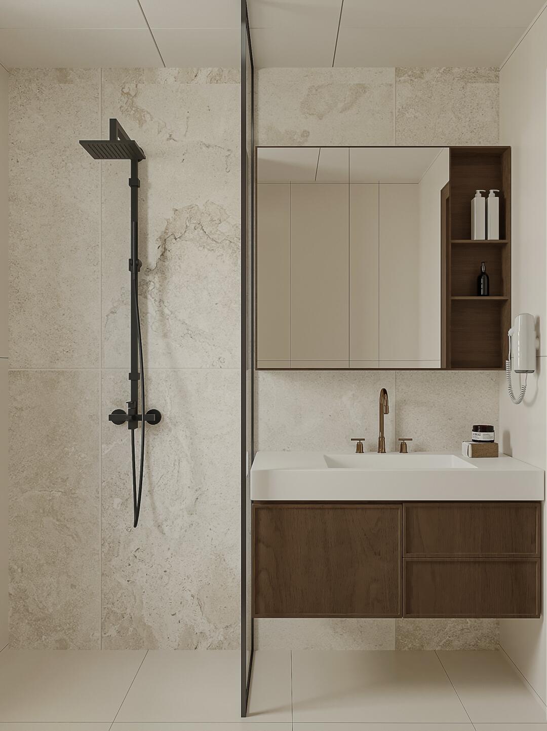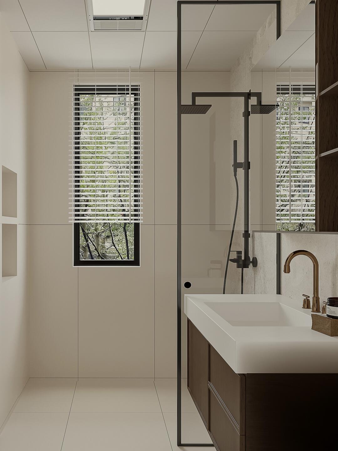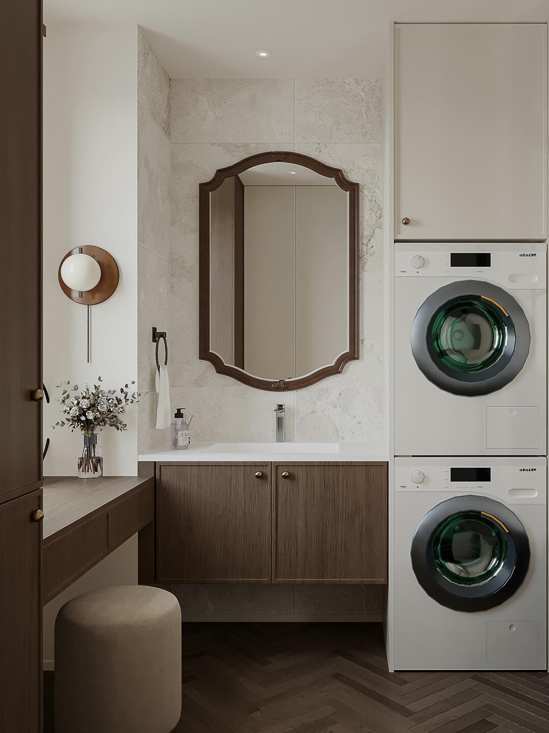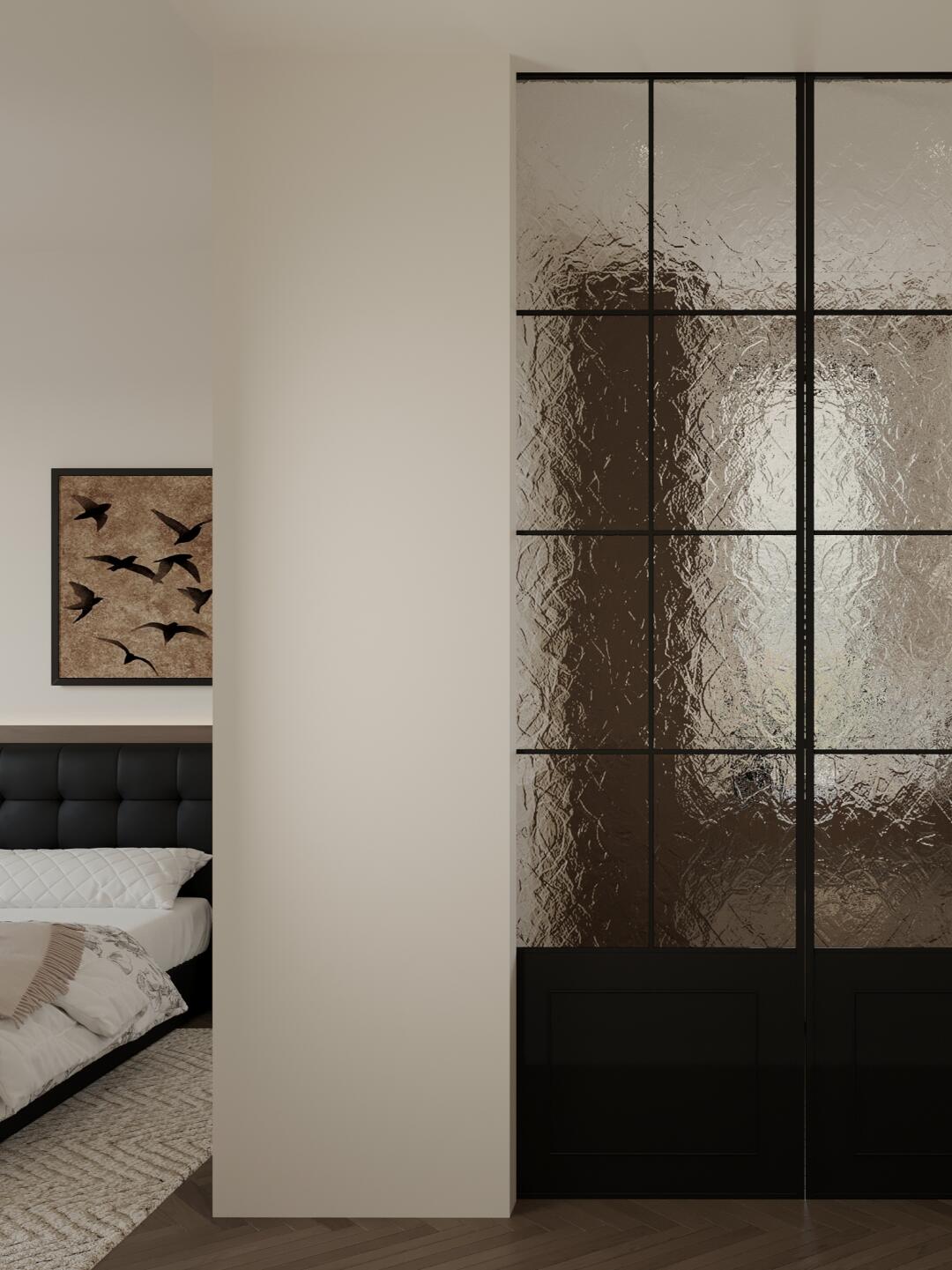 主臥衣帽間選擇復古玻璃推拉門,打破封閉感,增加空間流動性,更加開闊、明亮。