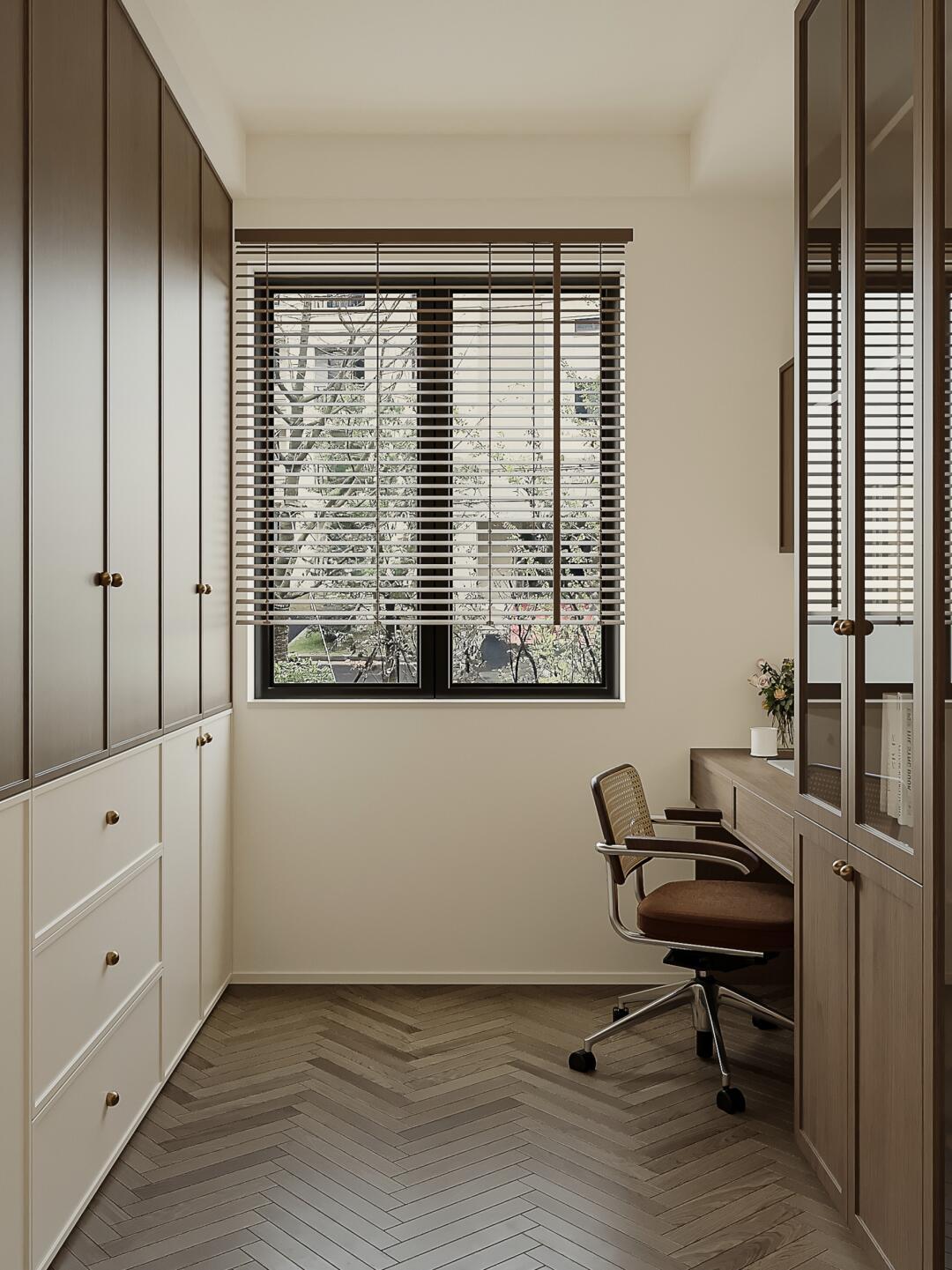 次臥根據業主的改造成衣帽間+書房的功能性房間,