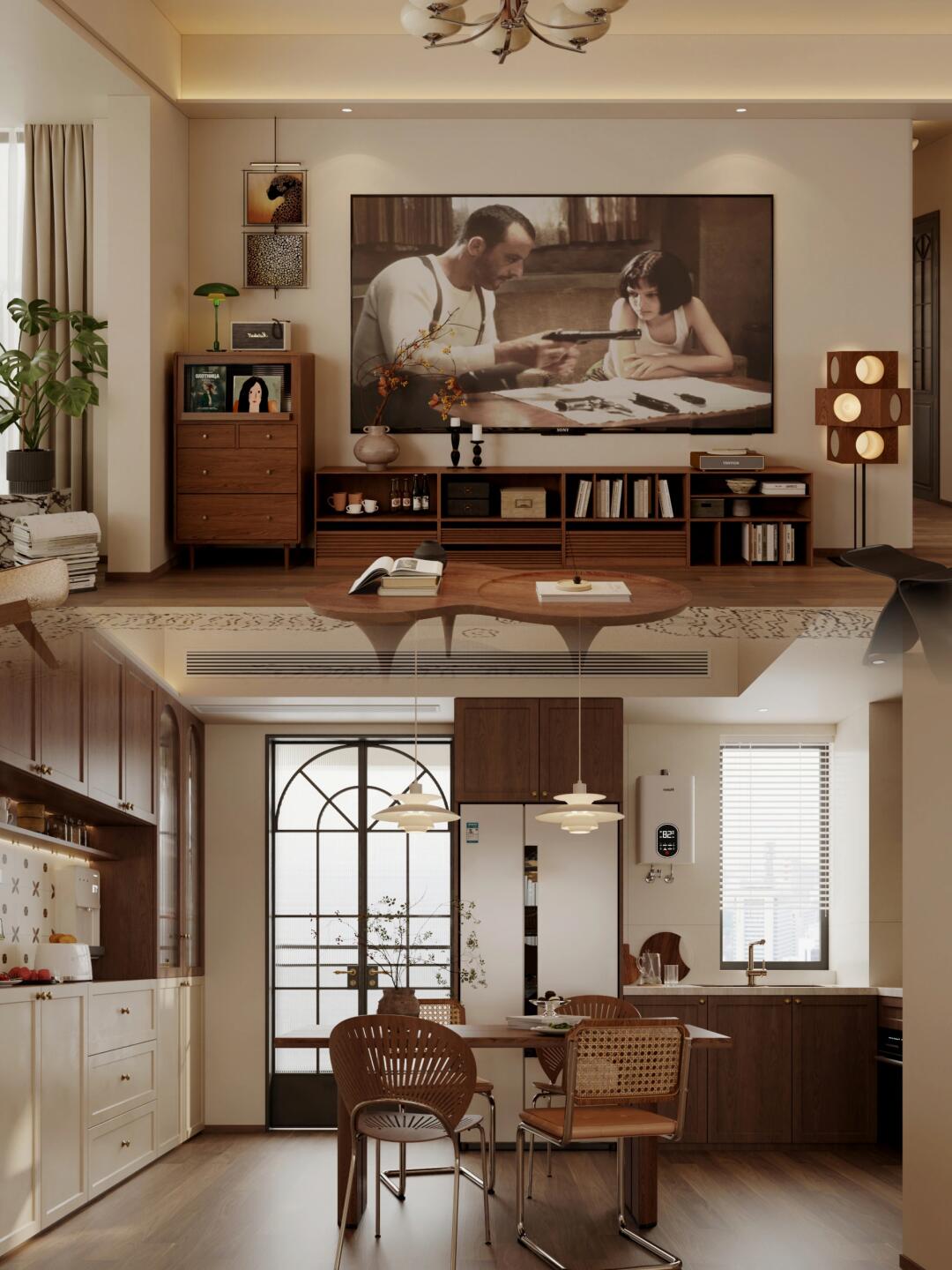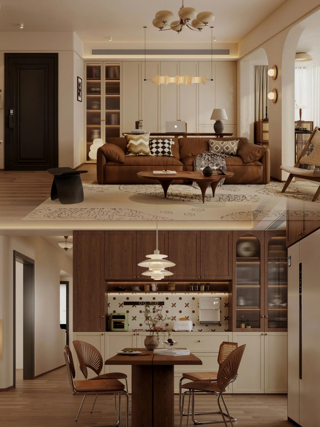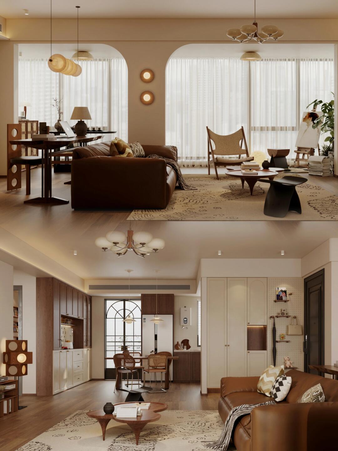 家主熱衷復古風,設計上整個家以棕調搭配,