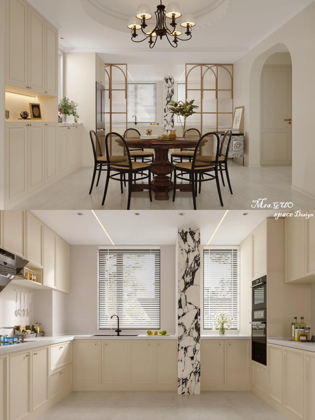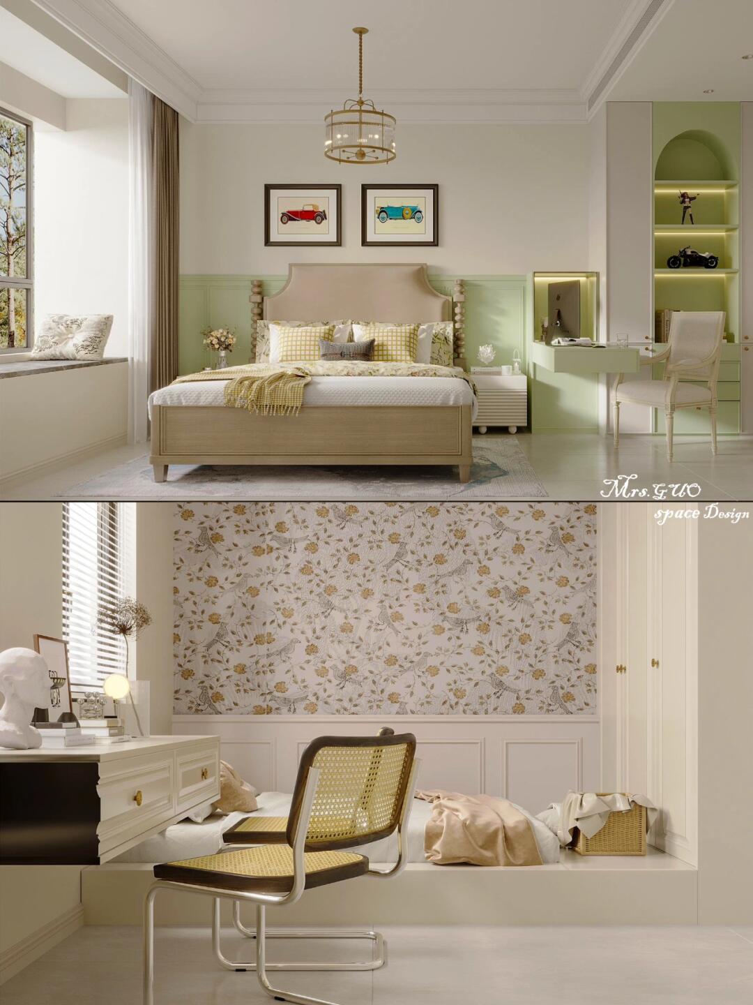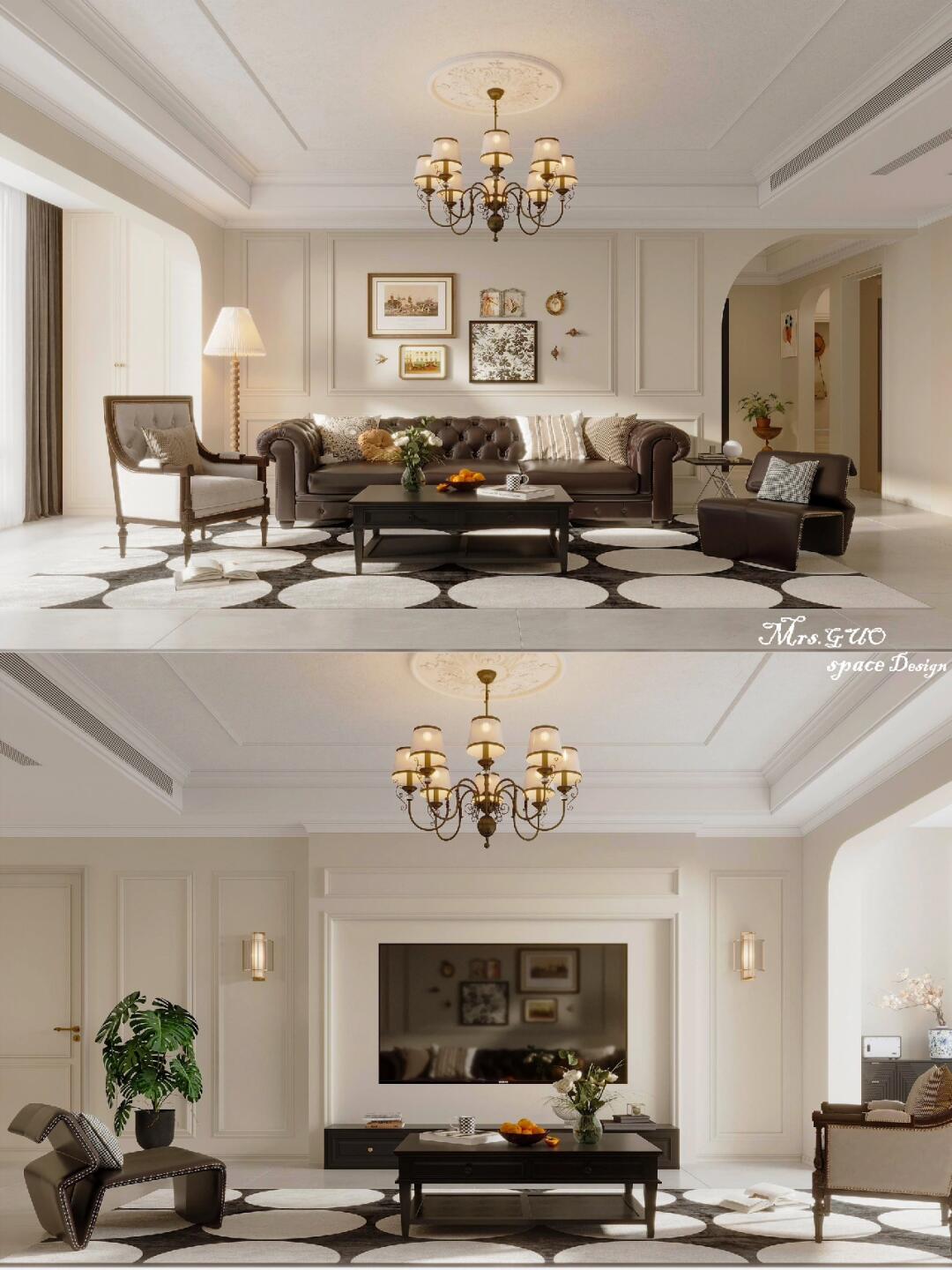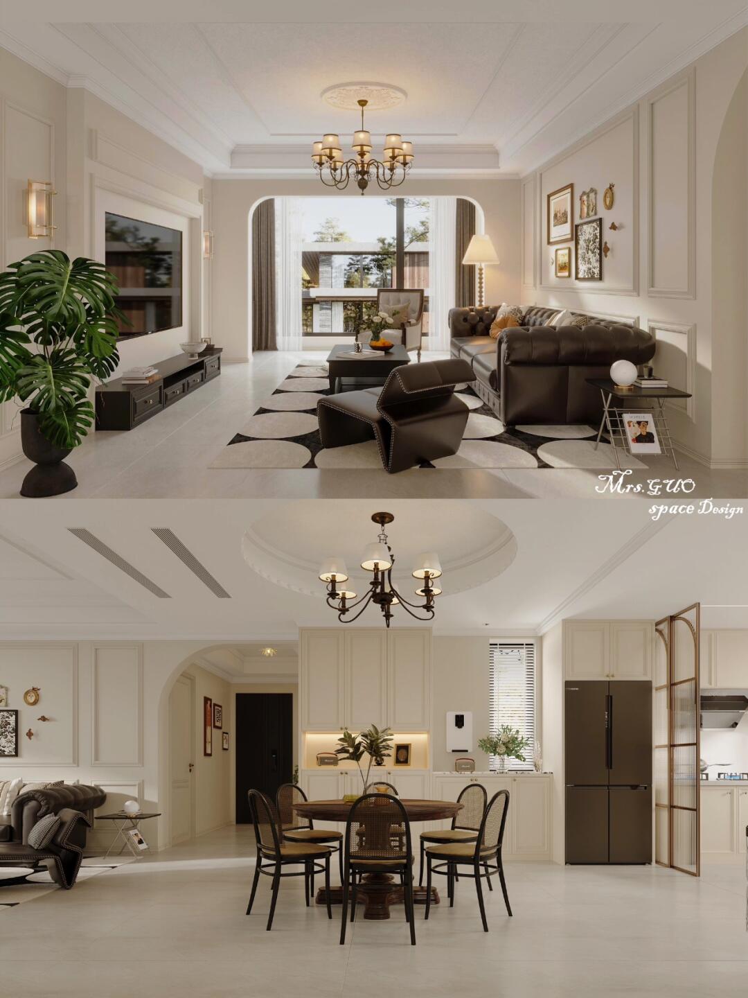 在這個方案中,設計為奶咖色調的現代美式風格,