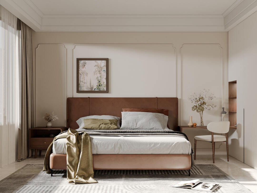 床品搭配采用咖色搭配給人溫暖的感覺整體色調(diào)沒有用特別冷的顏色。
