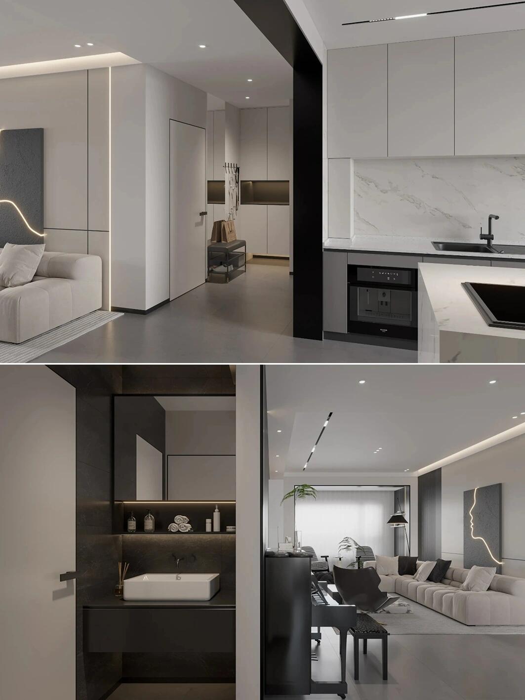黑白基調作為主色調,瞬間帶來了視覺的沖擊力和層次感,讓你的空間變得非常現(xiàn)代又富有層次!