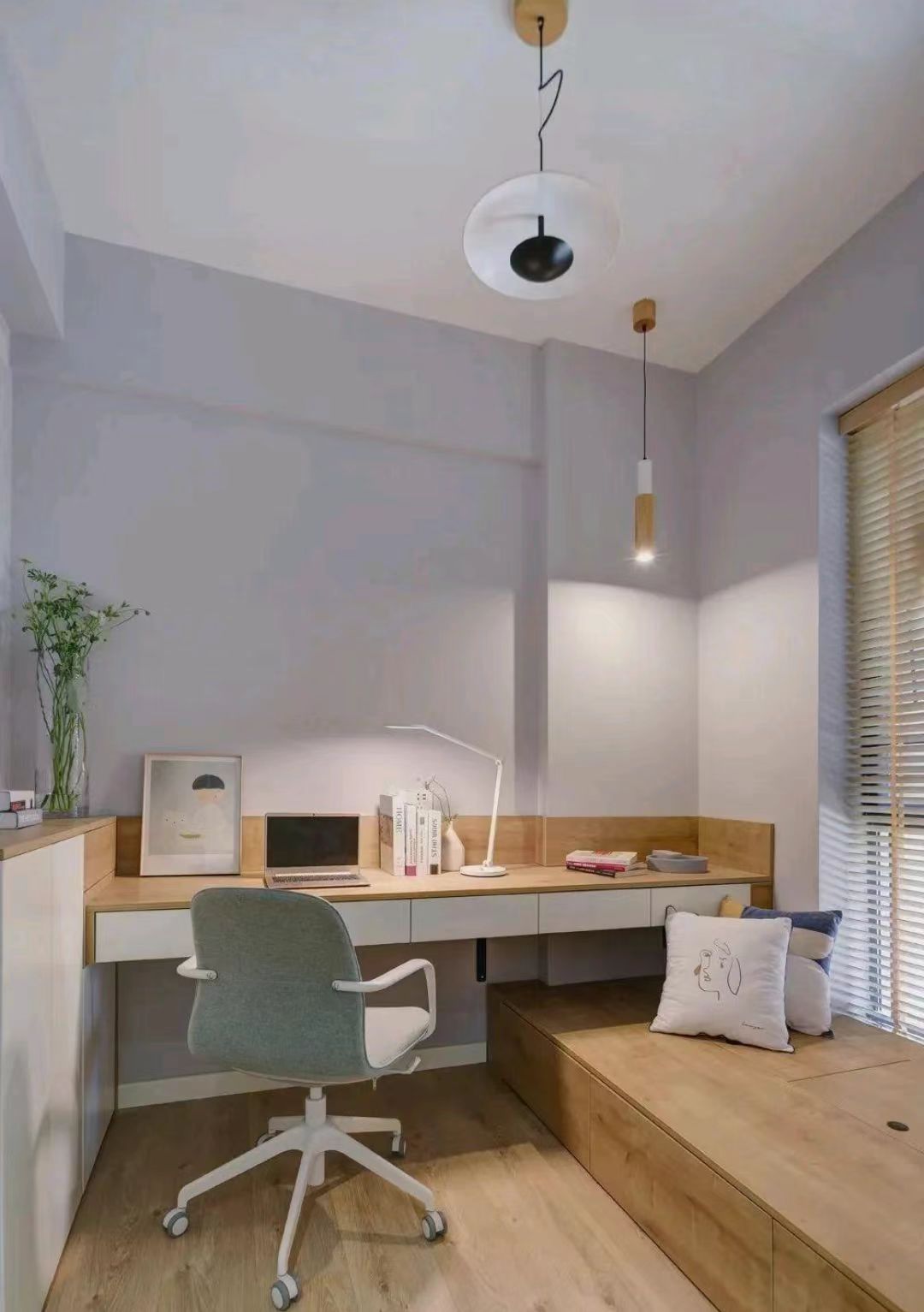 小戶型,或者家里空間有限,不夠單獨(dú)開(kāi)辟一間書(shū)房。只是在客廳找一個(gè)小的角落,就能打造出一個(gè)簡(jiǎn)單的書(shū)房, 方便有夜讀的習(xí)慣,又不想在臥室里打擾到家人的休息的業(yè)主。