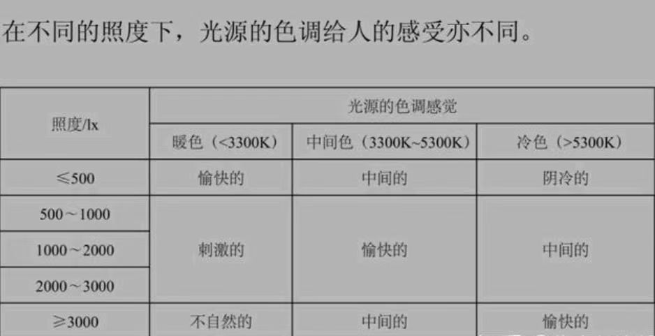其次,照明必須滿足人的心理需求,如色溫、照度對(duì)人情緒的影響。