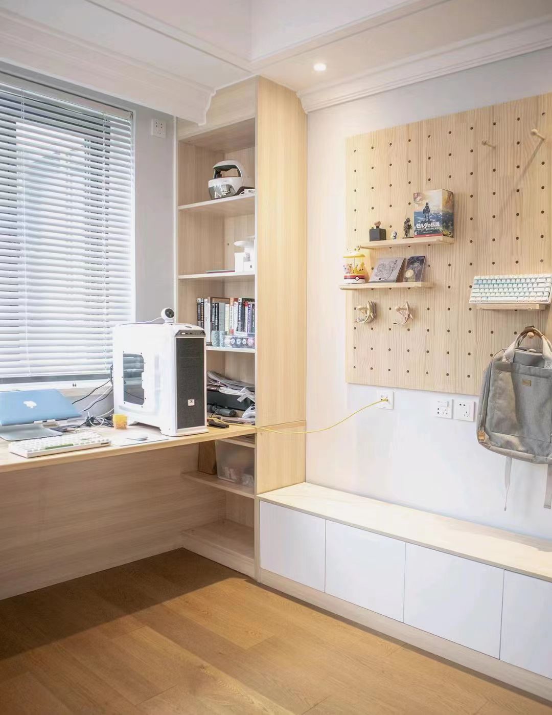 墻面布置了洞洞板,用于一些小物件的收納。